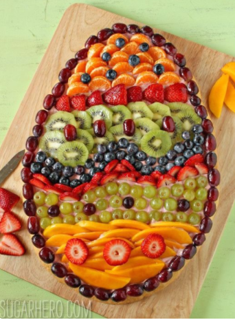 Juste des petites idées comme des clins d’œil, pour l’apéro ou pour le dessert, comme par exemple, ce plateau de crudités ou celui-ci de fruits, ces assiettes rigolotes ou ces sablés en forme de lapin.